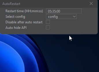 La opción de Auto hide API es para que después de que reinicie el bot, se oculte la ventana del juego